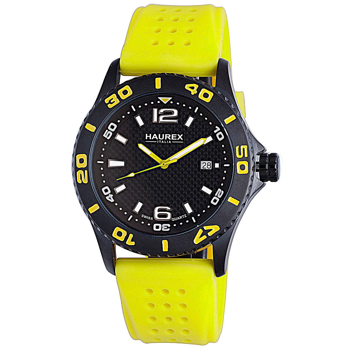 Haurex Italy Factor Men's Black Dial Yellow Strap Watch