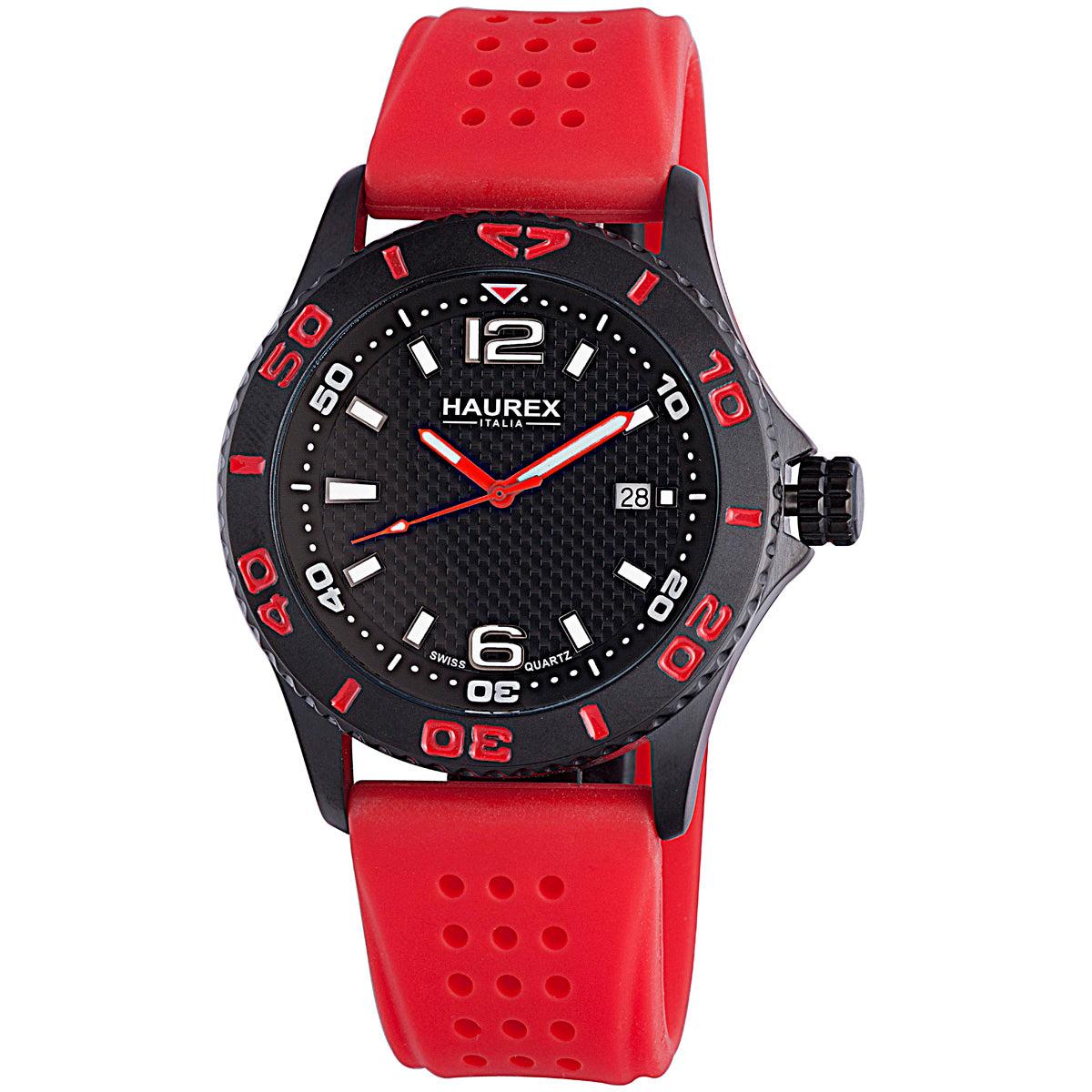 Haurex Italy Factor Men's Black Dial Red Strap Watch