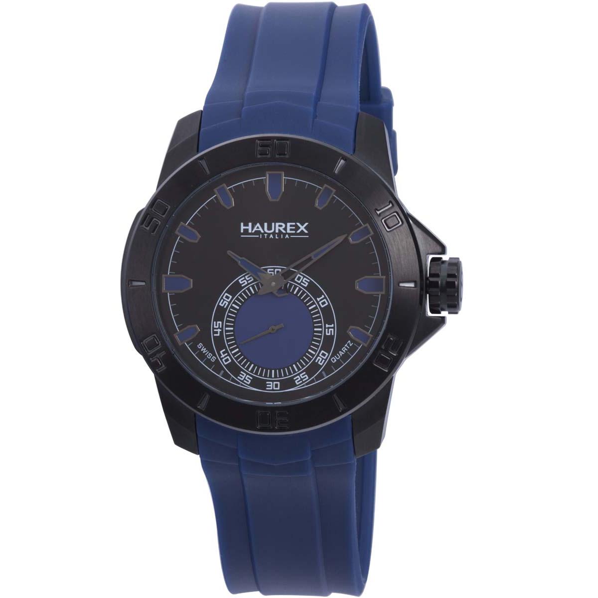 Haurex Italy Acros Men's Black Dial Blue Strap Watch
