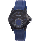 Encased in black IP coated stainless steel, its black dial features luminous hands and is surrounded by a black IP coated unidirectional bezel. Its blue sub-second subdial and indices matches the blue rubber straps which comfortably close with a buckle clasp for safe and secure all day wear. Water resistant to 30 meters, it is a great addition to any timepiece collection.