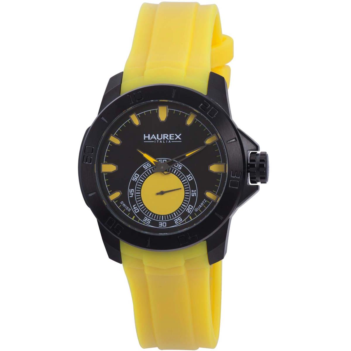 Haurex Italy Acros Men's Black Dial Yellow Strap Watch